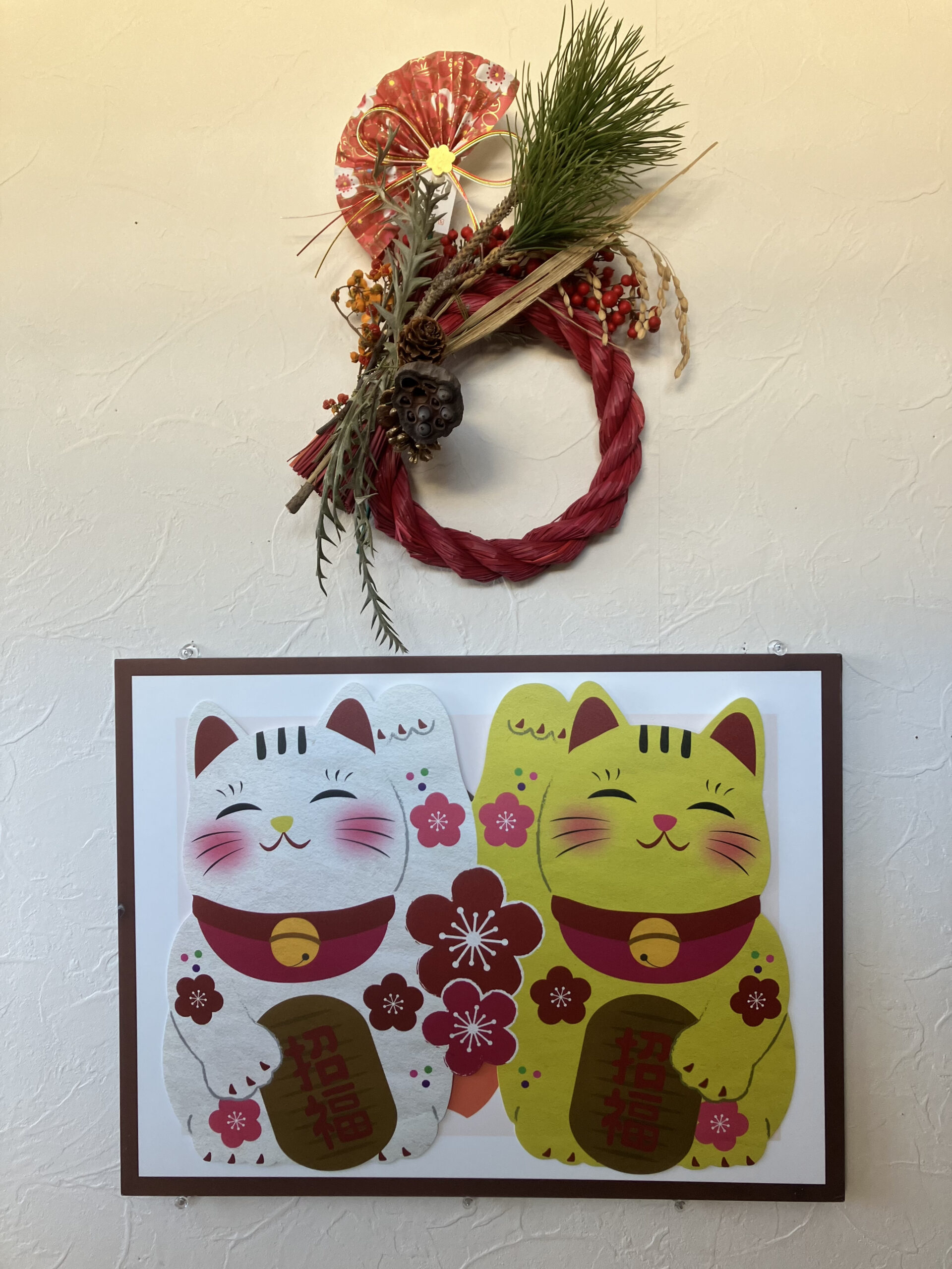 玄関を通るたびに、鮮やかな赤色がパッと目に飛び込んできて、ホーム全体が晴れやかな新春の空気に包まれています。来客の方やスタッフも「素敵ですね!」と思わず足を止めて見入ってしまうほどです。利用者さんたちの想いが詰まったこのしめ縄が、きっと2026年のたくさんの福を呼び込んでくれることでしょう。